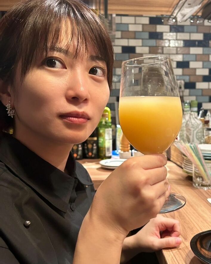 志田さんは「美味しそうなものには全力で反応」とつづり、グラスを片手に乾杯をしているようなショットを投稿。
