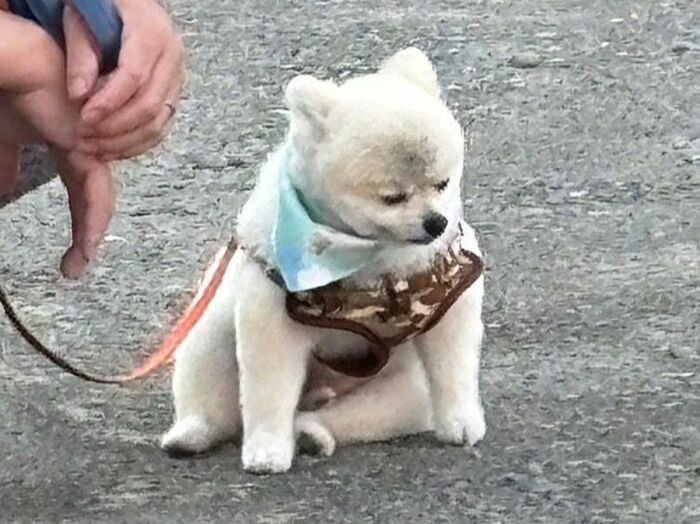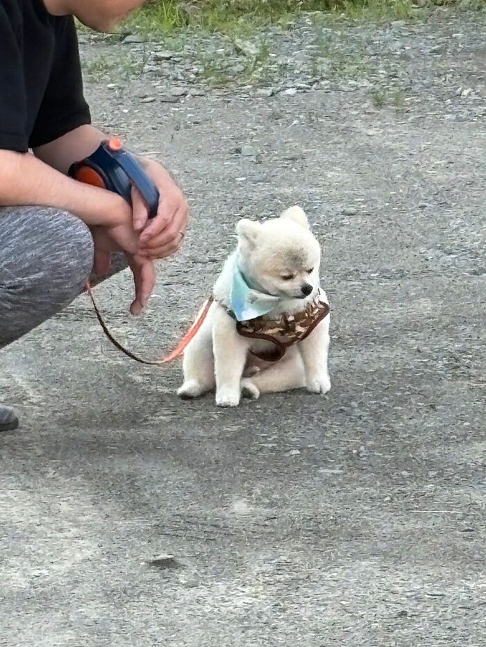 この日、朝から絶好調だったゴン太くんはいつもより長く1時間ほどお散歩を楽しんでいたそうなのですが…さすがに疲れてしまったのか急に座り込んでしまったのだとか。