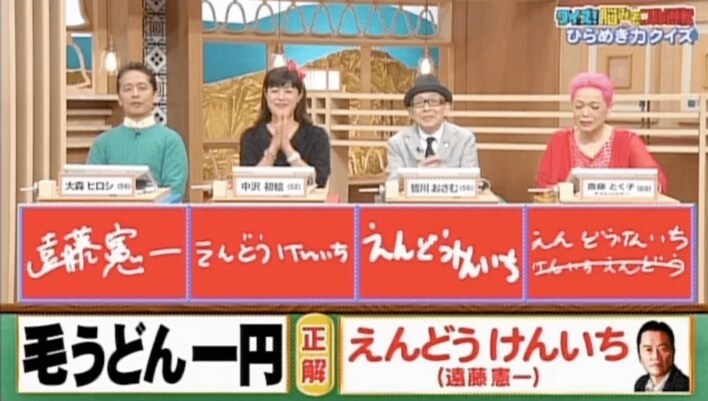 「毛うどん一円」。この文字をひらがなに変換してから有名人の名前に並べ替えてください。