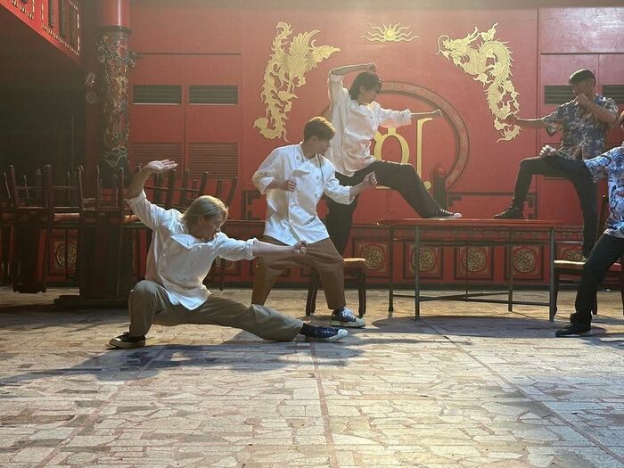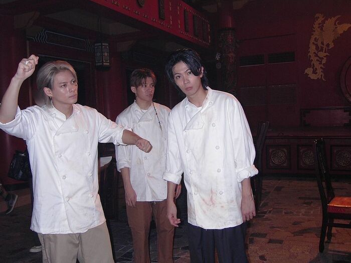 神宮寺さんがコックコートを着て、平野紫耀さん、岸優太さんと並んでファイティングポーズを決めた、MVのワンシーンと見られる写真を公開!