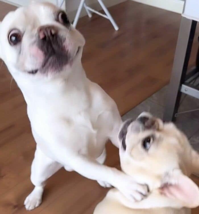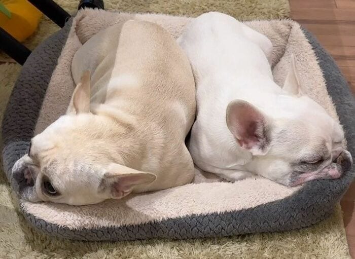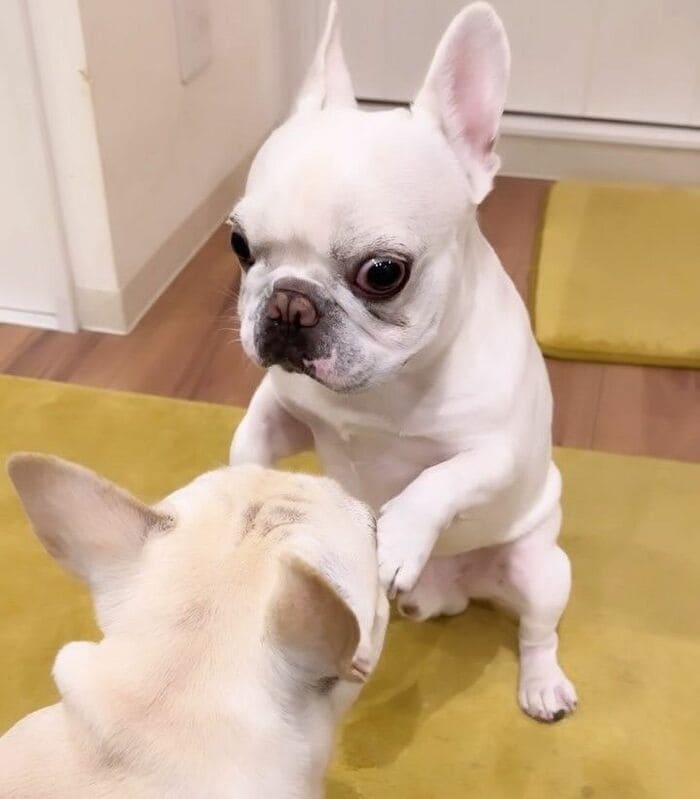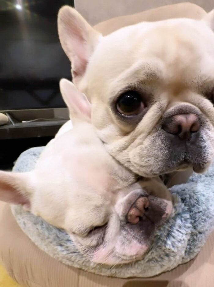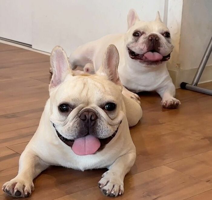 とある家庭で暮らすフレンチブルドッグの「まるお」と「はる」。
