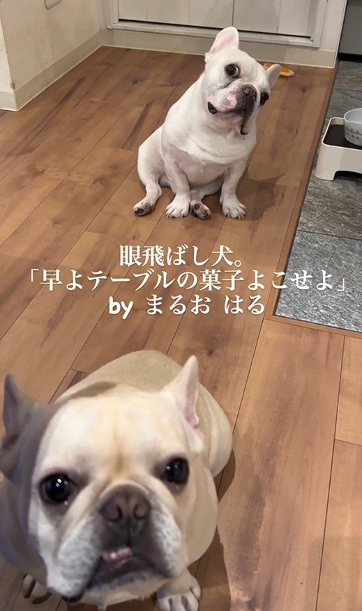ある日、「眼飛ばし犬。」という文言とともにインスタグラムに投稿された「まるお」と「はる」の動画。