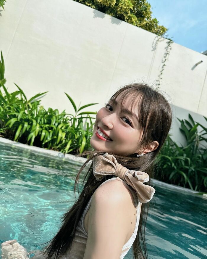 SNSからは「振り返り美人じゃん!」「ホクロセクシー!」「肌つやつやでお目目もきれい!」「プールに降りた天女様!」などと反響を呼んでいます。