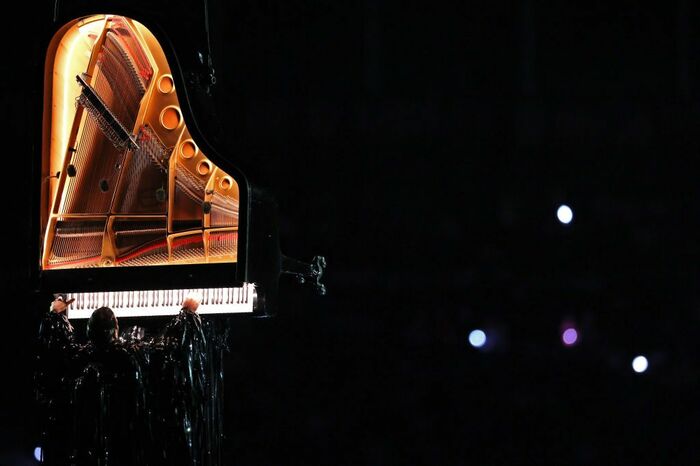 さらに、2024年8月11日に行われたオリンピックの閉会式では、ピアノが地面から徐々に上がり、つるされた状態で演奏する演出もありました。
