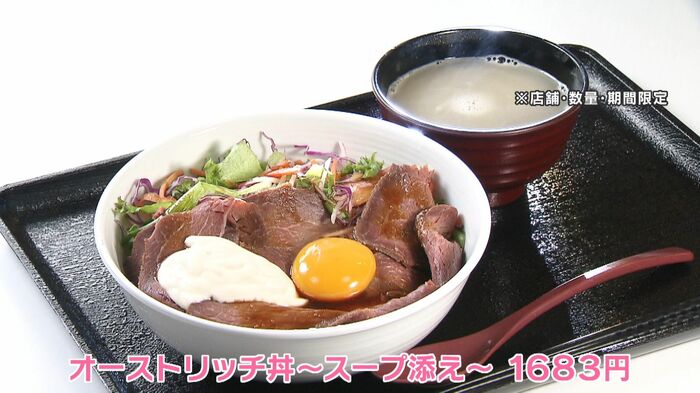 SNSでは、「個人的に味はジャーキーに近いなー」「鴨みたいな感じの味する」「ラム肉くらい野性味があるけど、味は牛寄りな感じでうまい。」などと、早速“ダチョウ肉丼”を食べた人たちの感想の声が多く上がっています。
