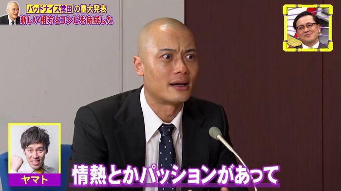 最初のゲスト、バッドナイス常田さんは「実は…新しい相方とコンビを組むことになりました!!」と報告。
