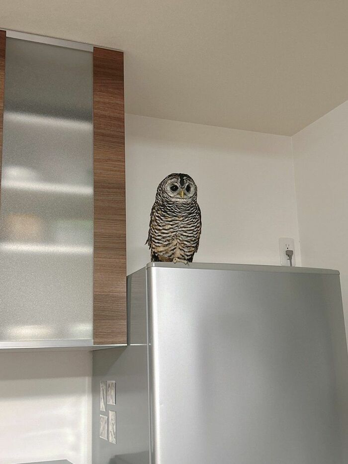 かなたちゃんは炊飯器の他にも、まるで置物のように冷蔵庫の上に乗ったり…