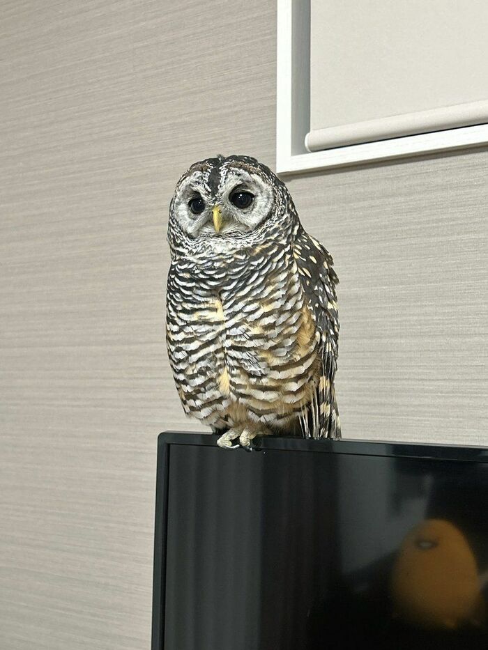 じっとどこかを見つめてテレビの上に乗ったりなど、お気に入りの場所はたくさんあるそう。その日の気分で寝るところを決めているようです。