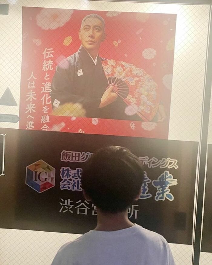 父・團十郎さんのポスターに見入っている様子の新之助さん、