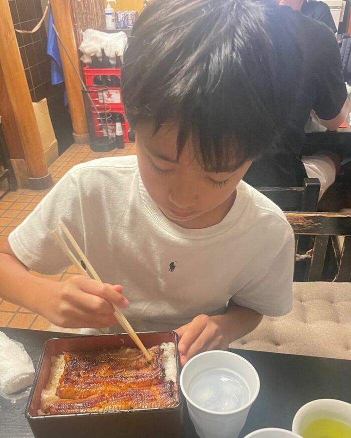 我が家で一番人気!の うな重を食べる新之助さんをパシャり