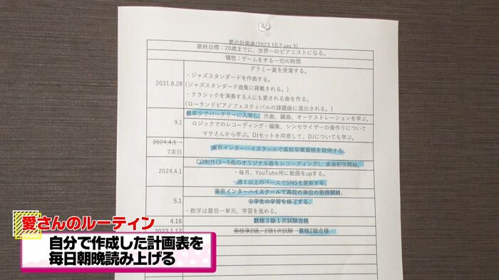 また、愛さんが夢を叶えるために欠かさないルーティンが、自分で作った計画表を毎日朝晩読みあげること。