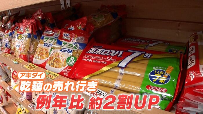 こちらのスーパーでは米不足の影響で今は乾麺の売れ行きが例年に比べ2割ほどアップしているといいます。