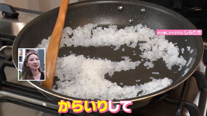 しらたきを刻んで、からいりして、それを半々で炊いてかさ増し