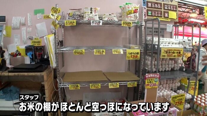都内のスーパーに行ってみるとお米の棚はほとんど空。