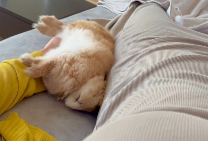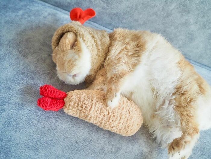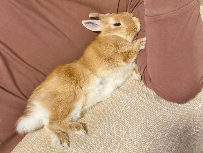 うさぎの中でも、いなりくんのように、無警戒でここまで大胆にお腹を見せて眠る子はなかなかいないといいます。
