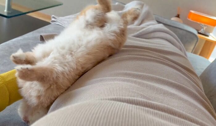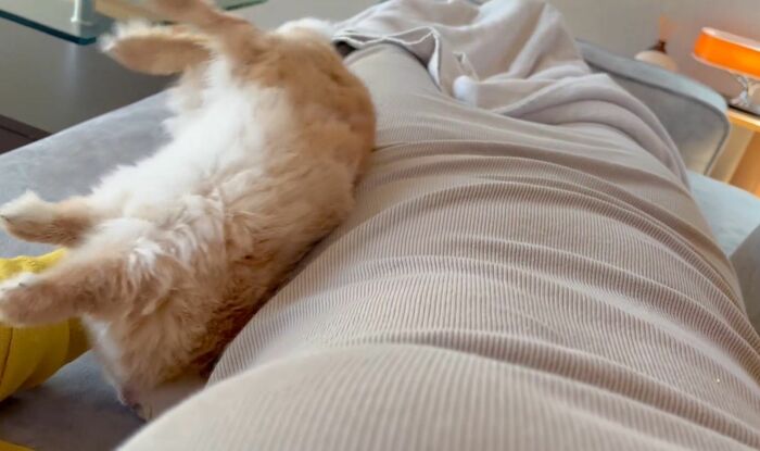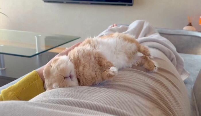 飼い主によると、この寝方はおうちにやってきてから半年くらい経ってから見られるようになり、それから一緒にお昼寝するとよくこの無防備な姿になるんだとか。
