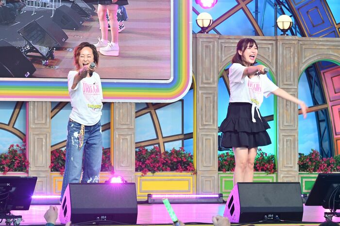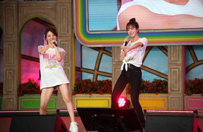 その前に「振り付けを覚えてほしい」とダンスのレクチャータイム。かのうさんが「こうやったり、こうやったり…」とジェスチャーを交えて紹介するも、あさ陽さんから「『こうやって』しか言ってない(笑)」とツッコまれ、会場はあたたかい笑いで包まれました。