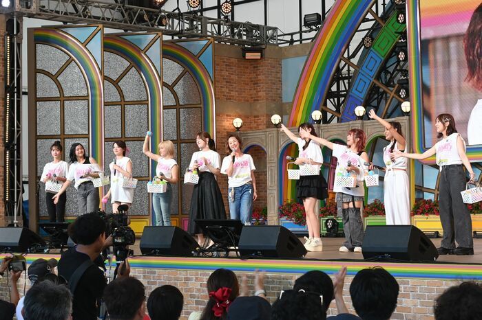 曲の後半には全員がステージに登場。夏の終わりを惜しむように腕を大きく左右に振ってステージを盛り上げ、今度はステージ上から客席にサインボールを投げ入れて最後の交流を楽しみました。