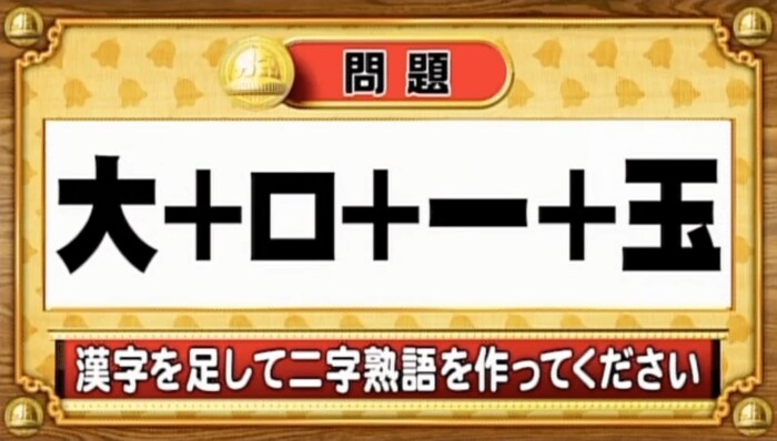 「大+口+一+玉」。漢字を足して二字熟語を作成してください。