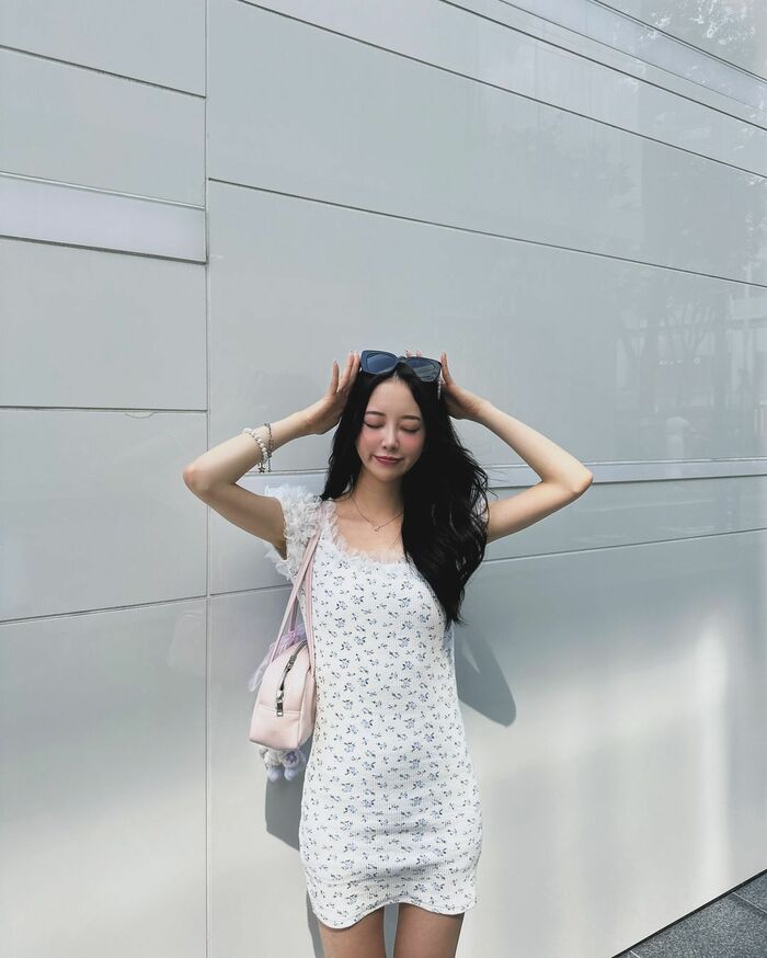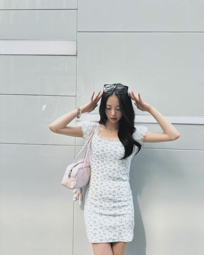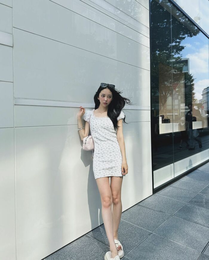 ミニ丈のワンピースからすらっとした美脚が見える、スタイル抜群な姿を披露していました。