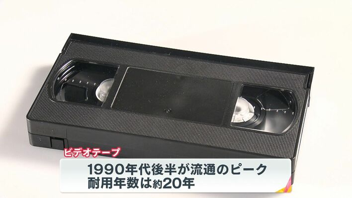 1990年代後半が流通のピークだったビデオテープ。その耐用年数は20年ほどとされており、再生デッキも既に生産終了。