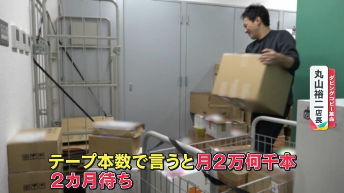 今は本当に多いですね、例年の倍はありますね。テープ本数で言うと月2万何千本っていうくらいが、おそらく来ているのかなと。今、一応2カ月待ち。