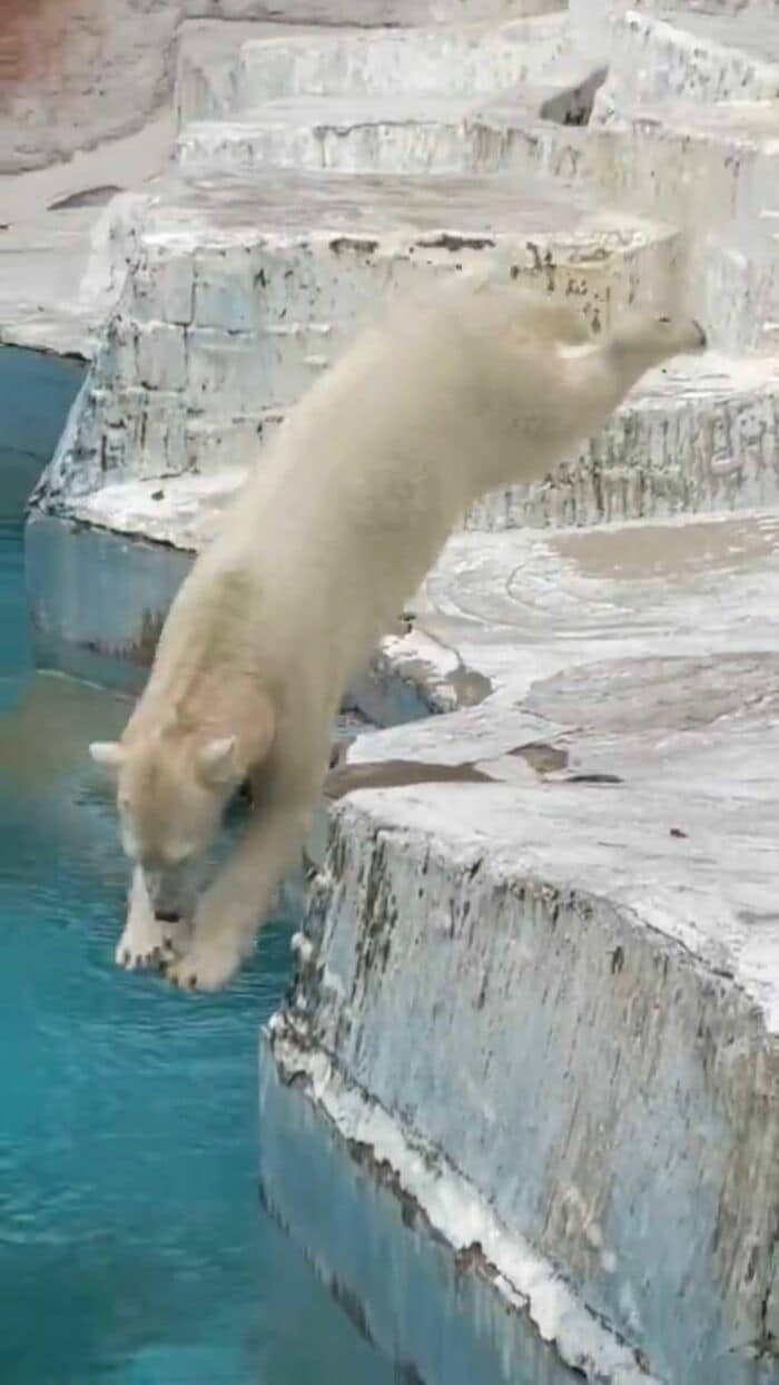 プール目がけて大ジャンプ!