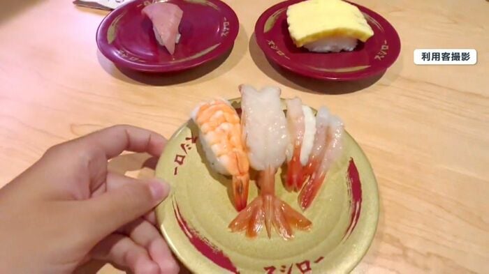 気になる現地のお寿司を見ると、カタカナで「スシロー」と書かれたおなじみのお皿に、プリプリのえびや、分厚く切られたおいしそうなマグロが…。