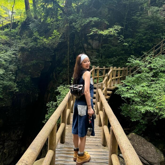 岐阜を訪れ自然に囲まれた箇所を巡ったり、水着で川遊びをしたりする様子を公開しました。