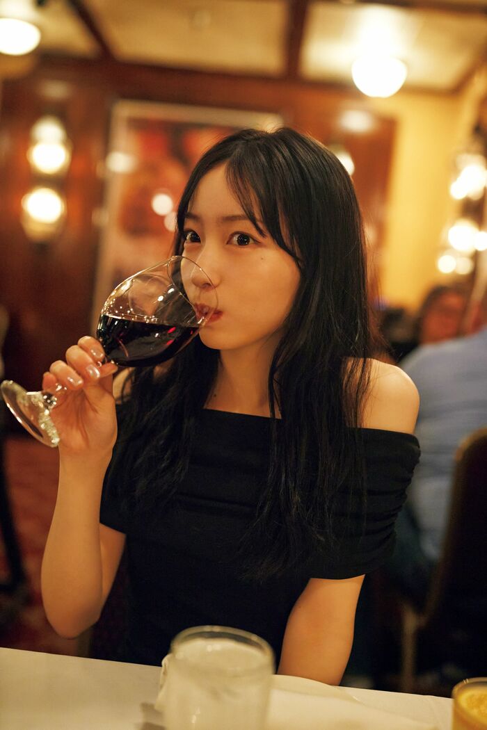 レストランで撮影した写真では、黒のドレスで肩を出した大人っぽい姿も。