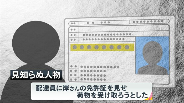 自宅の外で待ち構えていた見知らぬ人物が、配達員に岸さんの免許証を見せ荷物を受け取ろうとしたのだといいます。岸さんはすぐに警察に通報。