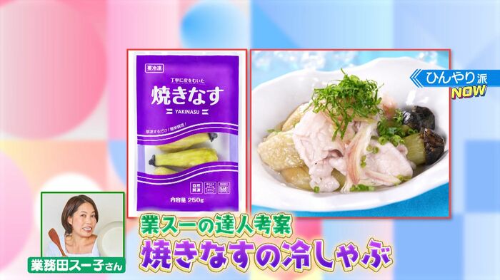 続いて『ひんやり派』のおすすめは、業務スーパーで2024年2月から販売している焼きなすを使った、超お手軽な焼きなすの冷しゃぶ!