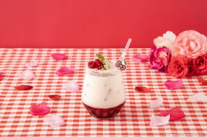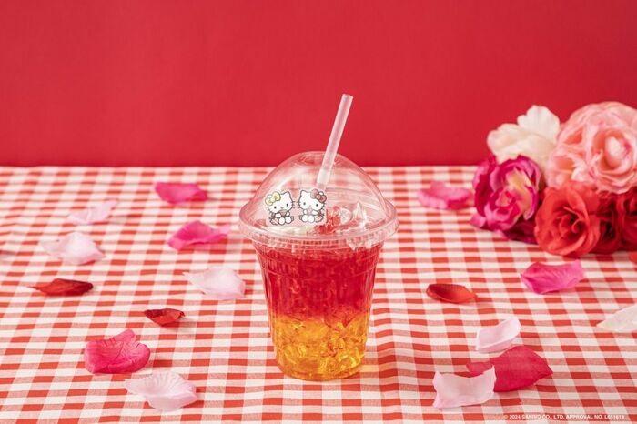 ハローキティとハローミミィのリボンの色をイメージしたドリンク。