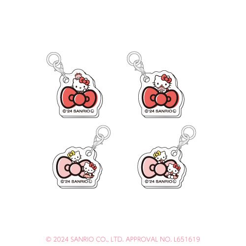 1つ目は、キティ、ミミィが描かれた「アクリルキーホルダー」。ランダムで6種類用意されています。バッグにつけて一緒にお出かけしたくなる可愛さです。