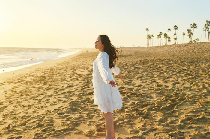 衣装は「海に合うものを」と考えて、白でシンプルな、ちょっと透け感のある衣装がいいかなと思って、白いワンピースにしました。