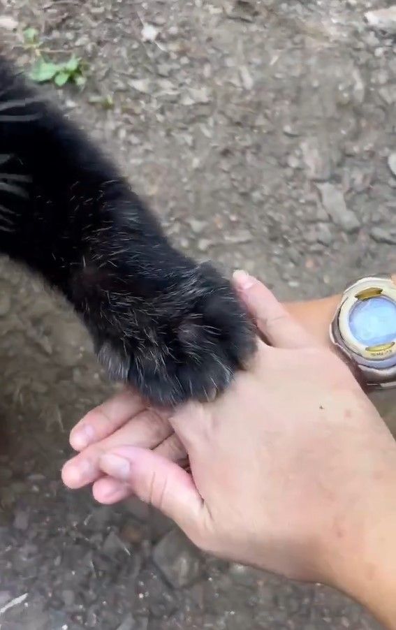 「ネイ」が前足を飼育員の手に乗せて、見事成功!