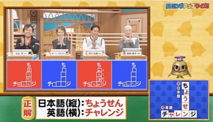 正解は「ちょうせん(挑戦)」と「チャレンジ」。