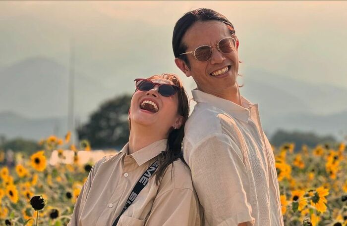 庄司さんは、家族でひまわり畑を訪れたことを報告し、息子が撮影してくれたというエモい夫婦ショットを公開。