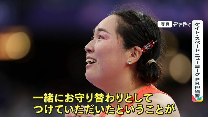 北口選手ご自身にとっても本当に大事な場面だったかと思うので、そんなところにもしケイト・スペードのアイテムであればケイト・スペードのアイテムを一緒にお守り替わりとしてつけていただいたということがうれしいです。