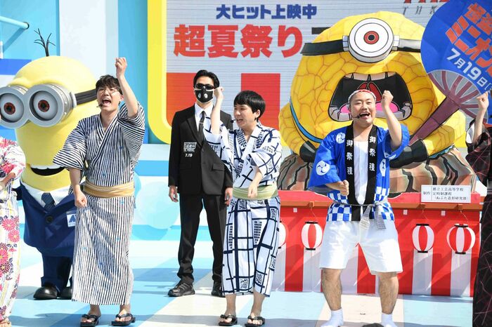 フジテレビ本社前の野外ステージに6人が登場すると、周囲から大きな歓声と拍手があがりました。まずは、改めて作品の見どころについての質問が。『怪盗グルー』について秋山さんが「家族愛あり、新キャラクター登場ありなど、これまでのシリーズ以上の魅力が詰まった作品です」と語ると、菊田さんも「我々も声優として出演していますので、そこにもぜひ注目してください」とアピール。
