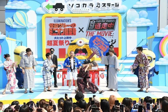 イベント後半では、ハナコ、FANTASTICS、ミニオン、盆踊りダンサー、そして観客が一緒に盆踊りを踊るという催しも!
