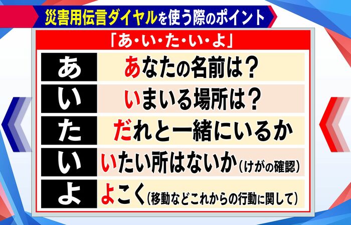 ◆災害用伝言ダイヤルを使う際のポイント「あ・い・た・い・よ」