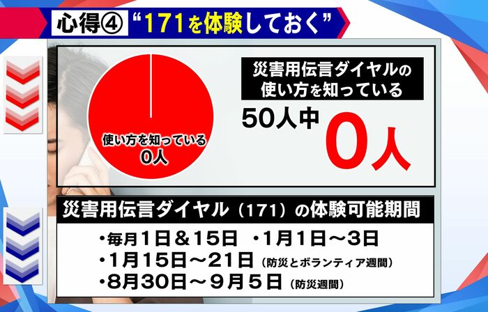心得④「災害用伝言ダイヤル(171)を体験しておく」