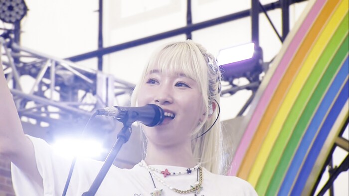 「水分補給を忘れずに、最後まで楽しんでください」と観客を気遣い、ヒット曲『初恋キラー』を披露しました。アップテンポなナンバーを、楽しそうに歌う乃紫さん。中盤のラップパートではノリノリで笑顔を見せました。