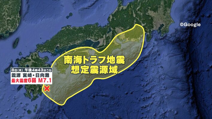 2024年8月8日、宮崎県南部で起きた震度6弱の地震。