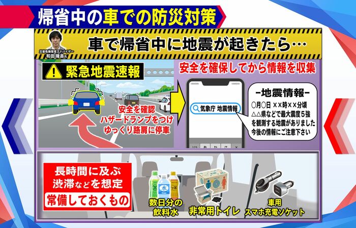 お盆の時期、車で外出中に地震に遭ったらどうすればいいのでしょうか?