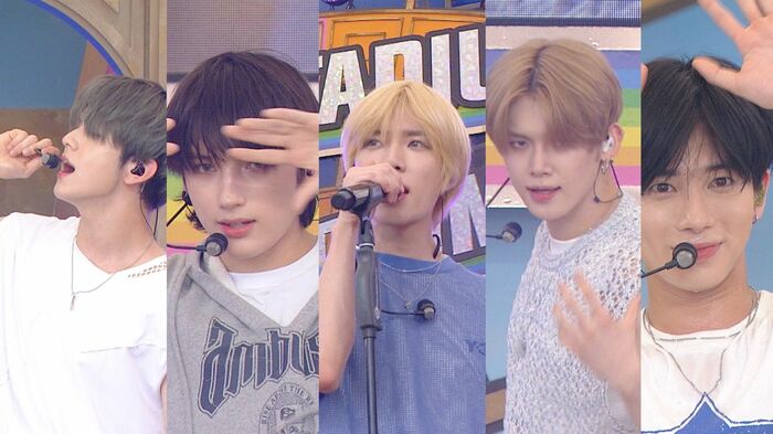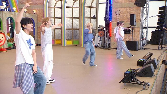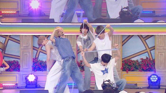 YEONJUNさんが「めざましライブー!みなさん盛り上がってますかー?」とファンのエネルギーを確認すると、BEOMGYUさんも「僕たちTOMORROW X TOGETHERは初めて『めざましライブ』に出演しましたが、客席が本当に近いですね!後ろのみなさんも見えてますかー?」と会場の後方まで集まったファンにも声をかけました。