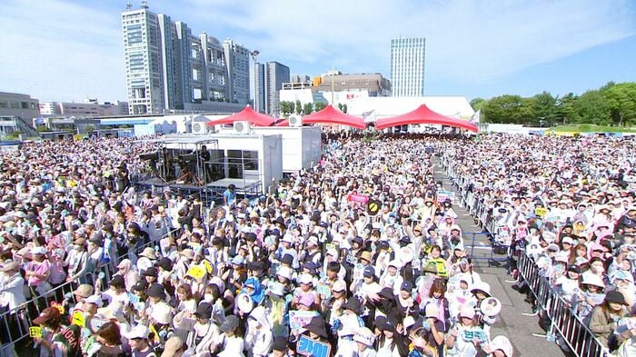そして、カウントダウンのかけ声が始まり「めざましライブ」のステージにメンバーが登場すると、ファンからはあふれんばかりの歓声があがり、ライブはスタート。