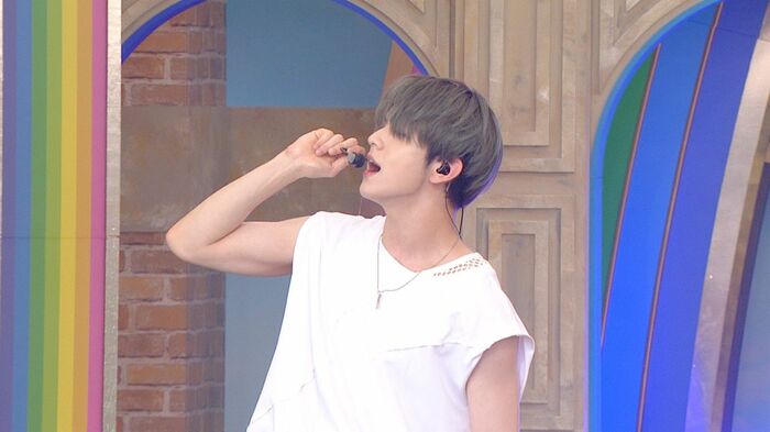 さらにそのまま4曲目へ!GReeeeNが作詞・作曲した日本オリジナル曲「Ito」では、美しい歌声が交差するバラードで会場をしっとり包み込み、HUENINGKAIさんは「こうやって野外ステージで歌うとまた新鮮で楽しいです」とコメントしました。また、SOOBINさんは「こうやって話すときも忘れずに水分補給してくださいね、ほんとに!」と呼びかけ会場の笑いを誘い、「僕たちも飲みまーす」と水分補給タイムで会場を潤わせます。