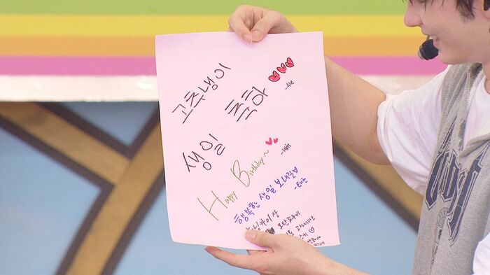 シャボン玉とクラッカーのシャワーを浴びせると、サプライズでメンバー自らデコレーションしためざましくんをプレゼント。さらに、メンバー直筆のメッセージも贈られました。